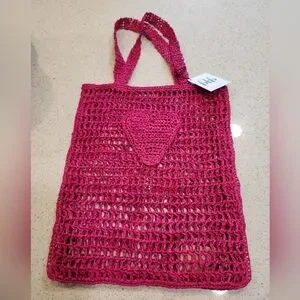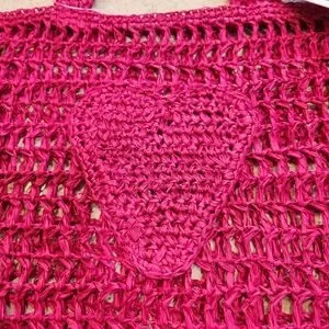 Crafted from raffia, this crochet tote bag features a heart and plenty of space to store your essentials for wherever the day takes you. Unlined Raffia Imported
