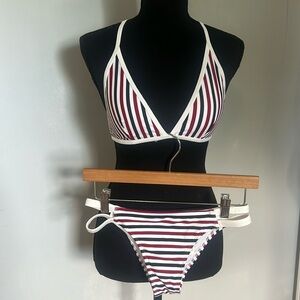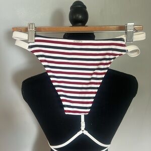 Abercrombie& Fitch- Dark red, white, blue striped bikini