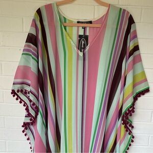 NWT “SHORE DRIVE” Striped Swim Coverup Caftan Tunic 🌸 Semi Sheer FreeSize