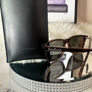 NEW SAINT LAURENT HAVANA GRAY SQUARE SUNGLASSES