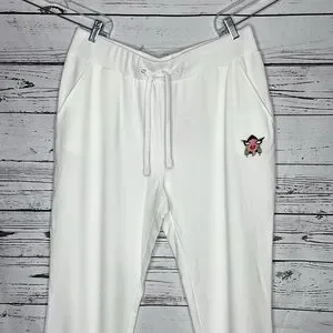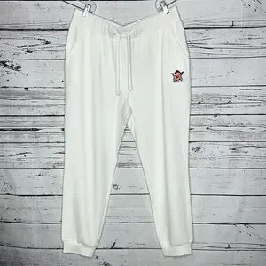 Badgley Mischka NWT Sz XL White Elastic Waistband French Terry Jogger Sweatpants