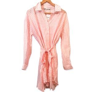NWT ENGLISH FACTORY Pink Gingham Belted Shirt Dress Sz. M