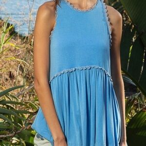 770. CLEARANCE! POL Tank Top Oversize Blue Sleeveless Baby Doll Pullover