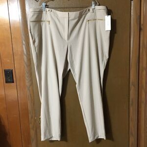 Calvin Klein Womens Plus Business Professional Straight Leg Beige Pants- 24W