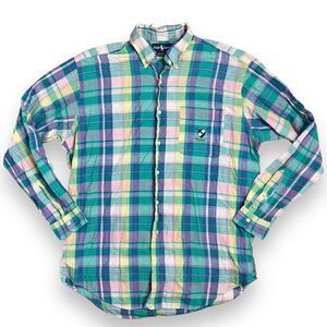 Ralph Lauren Shirt Mens M Colorful Madras Vintage Button Down Crest Golf Pocket