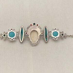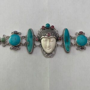 Sterling Silver Moon Goddess Carved Face Bracelet Garnet Turquoise!!!!