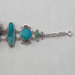 This is a very beautiful multi gemstone bracelet. It’s in great condition. It’s adjustable up to 7.5 inches.