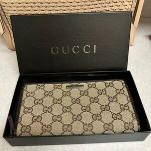 Gucci GG Canvas Zip Around Wallet with Box