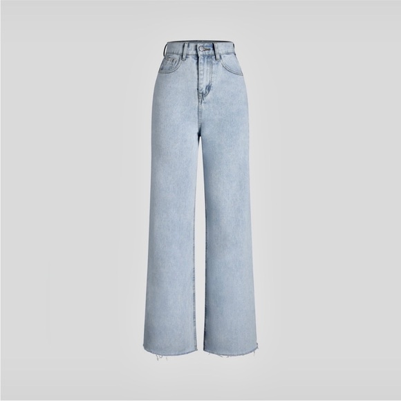 Light wash blue denim jeans- straight leg raw hem perfect closet essential jeans