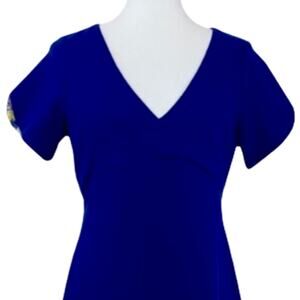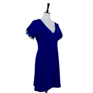 Betsey Johnson Dress V-Neck Blue Empire Waist A-Line Short Sleeve Women's Size 6