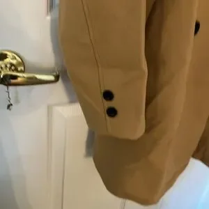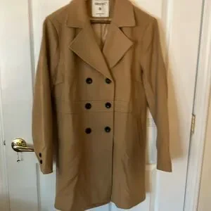 Brand new women’s double breasted coat. Machine washable has buttons on cuff and 2 side pockets. Armpit to armpit is 23” length from shoulder to hem is 32 and 1/2”. Made of polyester blend