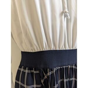 Ted Baker Size 1 US 4 Fancesa Combo Dress White Navy Blue Plaid Long Sleeves