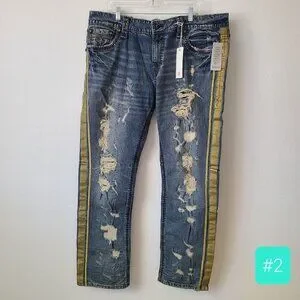 Rock Revival Reid Alt Straight Distressed Denim Jeans Size 42x34 Blue #2