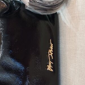 pink and black rhinestones, black straps. width 7.28" x 3.93 " depth