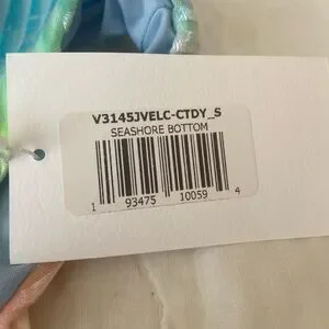 Super beachy fun high-waisted, high leg cut, cheeky bottom. NWT, never worn, still has panty-liner attached. Own at a fraction of the cost of retail. Get ready to lounge at the pool or beach.