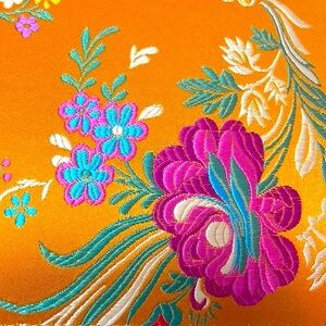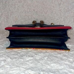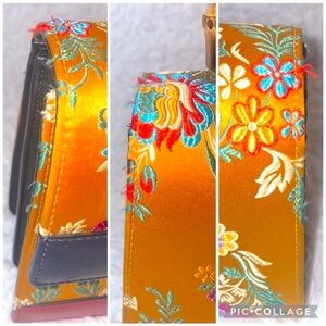 ๐ Exterior features satin multicolored Tokyo floral jacquard print and calfskin leather in black and red