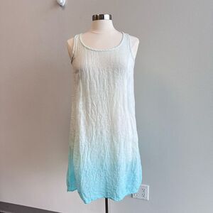 Eileen Fisher Woman Petite Small PS Mini Tank Dress 100% Linen Blue Ombre Sheer