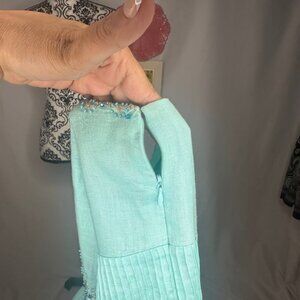 Ann Taylor Ocean Blue 100% Linen Bedded Halter Dress Size 14