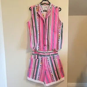 Vintage Gitano set. Bright, striped southwestern print. Top is listed as small and shorts 10, but would fit much smaller.