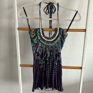 Sky halter top w gorgeous embellishments and details. Size XS NWT