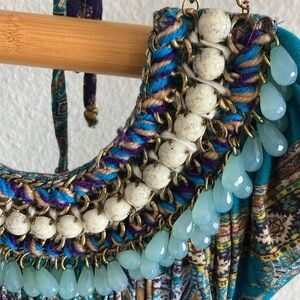 Spectacular beading, chains and turquoise and purple pattern-NWT