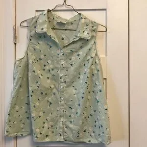 Cute ModCloth sleeveless blouse. Worn and washed once. Shoulder to hem 26". Pit to pit 23". Pretty daisy print with delicate lace details. Smoke-free home.