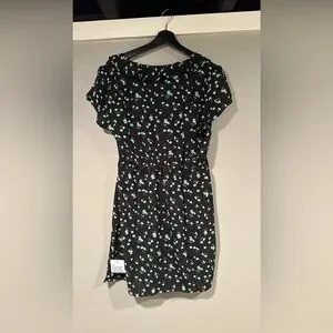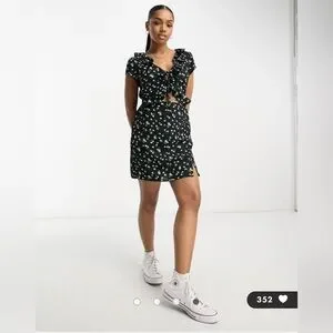 ASOS DESIGN lace trim ruffle bodice mini tea dress in black ditsy