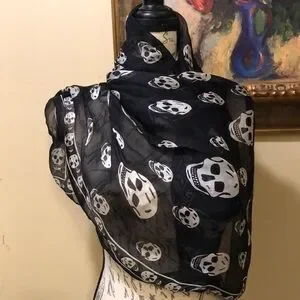 💀Alexander McQueen Large Silk Chiffon Skull print lightweight unisex scarf
