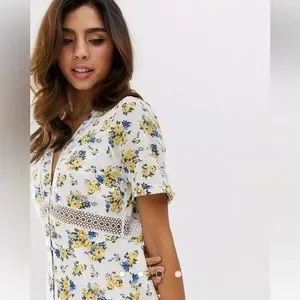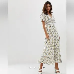 ASOS Lace Insert Button Through Maxi Tea Dress In Ditsy Floral