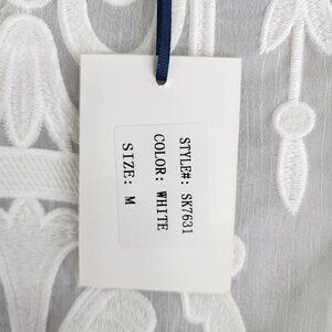 Womens White Stellah Blouse Top Lace Flutter Ruffle Sleeve Relaxed Embroidered M