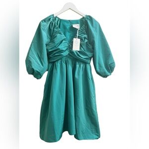 Hyacinth House Emerald Green Tuckernuck XS Ruched V-Neck Genevieve Mini Dress