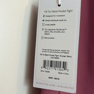 TAVI Activewear 7/8 Tie Waist Pocket Tight / leggings XL Berry