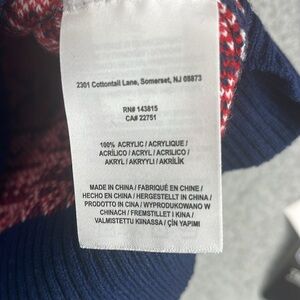 Brand new with tag. Measurements are pit to pit 19 inches and length is 24 inches. 100% Acrylic. Stretch. Pullover.