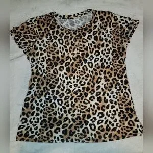 Victoria's Secret PINK Leopard Animal Print Perfect Crew Neck Short Sleeve Tee - Size Large