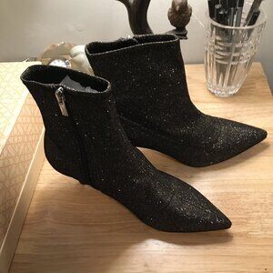 BADGLEY MISCHKA Erma Pointed Toe Booties in Mesh Glitter Size 7