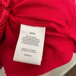 Color is Morrocan ruby. This shirt photographs really red but is a little darker color in person.