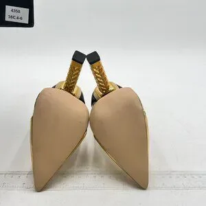 FSJ Gold Black Clear Gold Metal Chain Chunky High Heel Pointed Toe Slip On Fashion Party Prom Pumps Prom Shoes