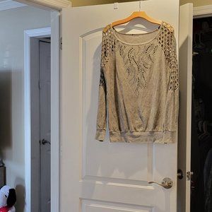 This Very Rare and Stylish Shirt will sure catch someone's eye. Size M. It has long sleeves with small holes down the sleeves in a sort of mesh style. The tag on the inside of the neck was cut out for more comfort just so you know.Very Different Shirt! Great condition! I'm ready to sell! Make your Best Offer Today!! You will be so happy you did!!