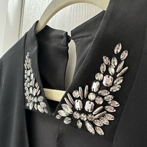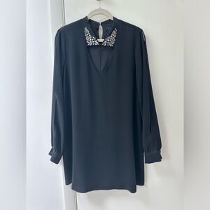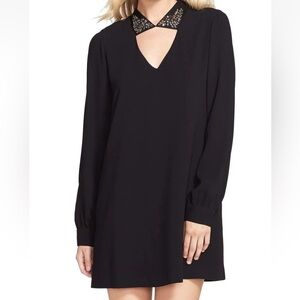 This BCBG dress has a gorgeous jeweled neck and interesting cutouts at the neckline and sleeves. Wore once for a work party, great condition!