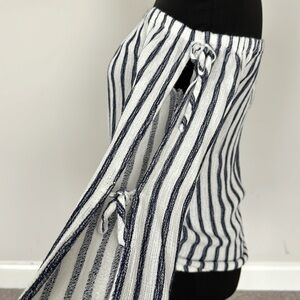 Navy and white top with cute tie details on the sleeves. The fabric has a linen feel.