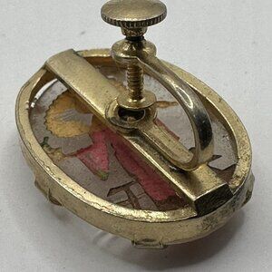 Vintage Geisha Earrings Clip On Twist On Hand Painted Gold Oval Earrings.