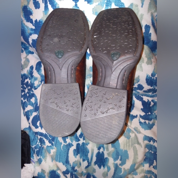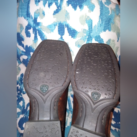 Ariat Round Up squared toed boots for women size 8.5 the boots are in pristine condition with absolutely no wear to the soles of the boot, no scuffs no cracks on leather all stitching is intact no frays! I owe the boots for a total of maybe 4 hours for a wedding and photos afterwards, never wore again!