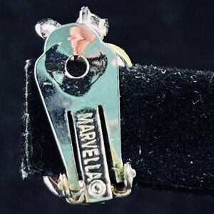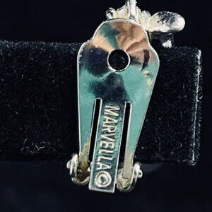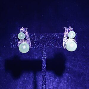 Vintage Marvella Silver Tone, Faux Pearl And Rhinestone Clip On Earrings. They are signed Marvella. The faux pearls glow under a black light.