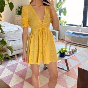 NWT For Love and Lemons - Yellow Spring Eyelet Swing dress - Medium