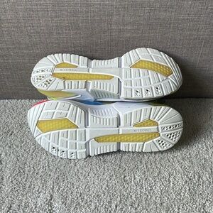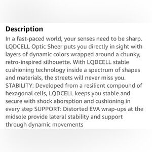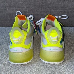 Puma Lqdcell Optic Sheer Lace Up Sneakers. Size 7 Kids, comparable to women’s size 8.5 (side by side pictured w Nike size 8.5). Neon multicolored. Details pictured above. Pre-owned, in good condition. Minimal wear, some stains on front of shoes (pictured).
