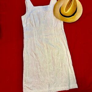 Charter Club White Eyelet dress - Size 10 - A-line style - completely lined - square neckline - sleeveless - with front/back darts - zip up back and 3" back slit - width across the chest approximately 15' x length approximately 33.5" - EUC as only worn 3 times - comfy and cool for hot summer days/nights - 100% cotton. Please be gentle with zipper when putting on/off. Feel free to ask any questions to insure a pleasant buying experience.