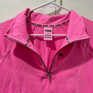 VS PINK Women’s Neon Pink V-Neck Quarter Zip Long Sleeve Sweater Top - size S
