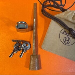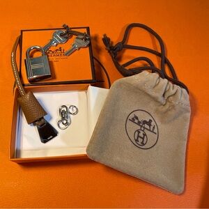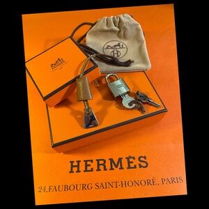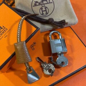 Hermes Palladium Cadena Padlock Rare #32 & Hermes Mini Clochette Epsom Bag Charm