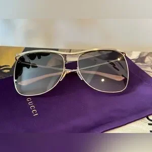 Real Gucci sunglasses with gold frame and gray lenses. Comes with case, bag, and lens cleaning cloth!