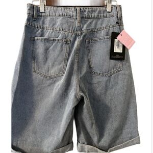 NWT. Vintage Wash Denim Longline Turn Up Boyfriend Shorts Size 8 (UK size 12)